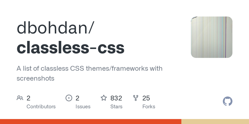 Incroyable travail mené par un ingénieur ukrainien : la liste complète de toutes les “classless CSS” disponibles sur le Web, avec une prévisualisation du rendu sur une page HTML de test.